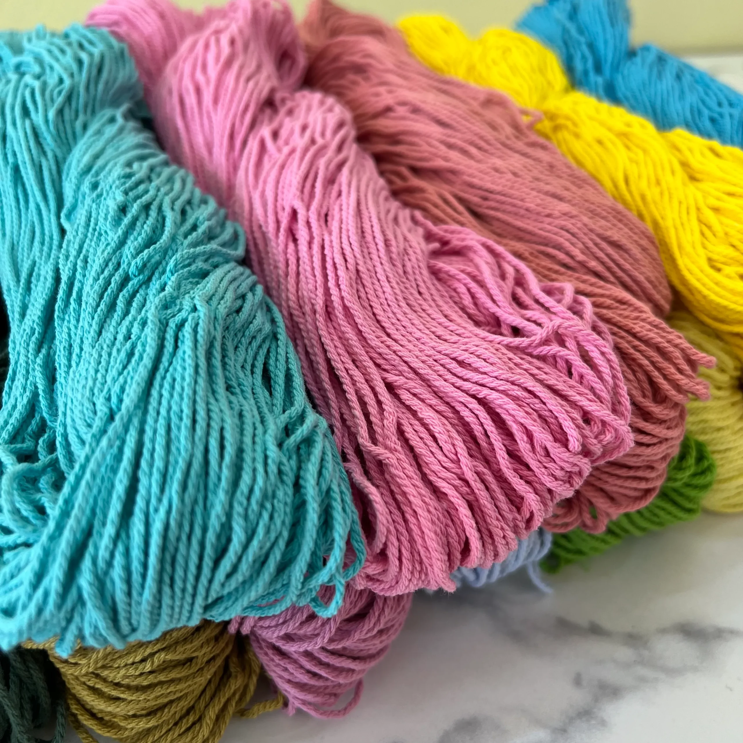 เชือกฟอกย้อมสี แบบไจ น้ำหนัก 100 กรัม ผลิตจาก Cotton แท้ 100% วัสดุธรรมชาติธรรมชาติ เบอร์ 12 ขนาด 2 มิลลิเมตร เส้นนิ่ม ถักง่าย นิ่มมือ มีสีให้เลือกมากมาย สำหรับถักกระเป๋า ถักหมวก ถักมาคราเม่ หรืออื่นๆ
