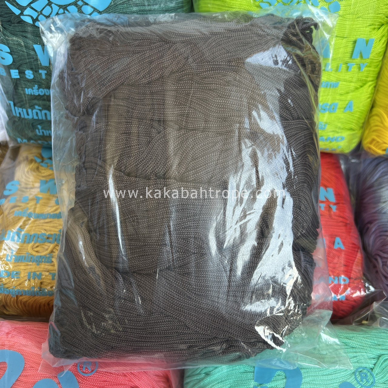เชือกร่มถักกระเป่า ไหมถักโครเชต์ ไหมถักกระเป๋าเกรด A ตราหงส์ (SWAN) สีน้ำตาลเข้ม เป็นสีพื้น ไหมญี่ปุ่นคุณภาพสูง เส้นนิ่มถักง่าย ถักเร็ว สีสวยทน สดไม่ตก มีสีให้เลือกมากมาย ทำจากเส้นใยสั่งเคราะห์ สามารถนำไปใช้ถักกระเป่า ถักเสื้อ ใช้เป็นเชือก DIY ใช้เป็นเชือกเอนกประสงค์ สามารถนำไปใช้ทำสร้อยคอ หรือเครื่องประดับต่าง