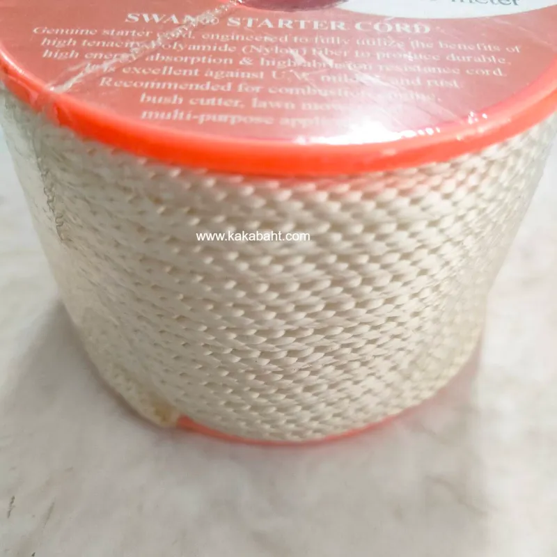 เชือกสตาร์ทตราสวอน (SWAN) ของแท้ ผลิตจากเส้นใยโพลีเอไมด์ (ไนล่อน) ที่มีความทนทานสูง สีขาวขนาด 5 มิลลิเมตร ยาว 20 เมตร ใช้สำหรับงานสตาร์ทเครื่องยนต์ต่างๆ เชือกลูกรอก สตาร์เครื่องตัดหญ้า ใช้เป็นเชือกอเนกประสงค์